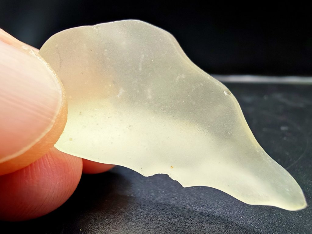 Také nemají tzv. skulptaci (jako většina jiných tektitů), protože ostrý písek po miliony let ohlazoval jejich tvar (jsou ale vyjímky, kdy se objevuje důlkovitá skulptace).