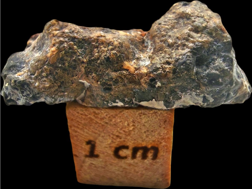 Všechny kameny postrádají fúzní kůru a byly značně erodované. Vnitřní část je převážně šedá s tmavě šedými a bílými klasy. Některá kovová zrna jsou makroskopicky viditelná.