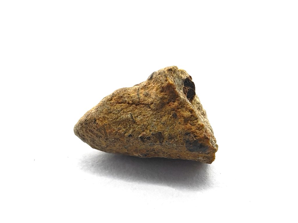 Fyzikální vlastnosti : Celková sebraná hmotnost byla přibližně 2 kg. Vzorky usazenin vykazují vnější povrch částečně pokrytý tmavou, mírně odřenou krustou z tavení. Povrch řezaný pilou odhaluje mnoho charakteristických milimetrových hnědozelených fenokrystalů olivínu zasazených do světle hnědožluté, jemnozrnné základní hmoty.