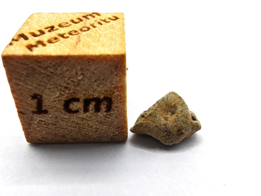 Fyzikální vlastnosti : Celková sebraná hmotnost byla přibližně 2 kg. Vzorky usazenin vykazují vnější povrch částečně pokrytý tmavou, mírně odřenou krustou z tavení. Povrch řezaný pilou odhaluje mnoho charakteristických milimetrových hnědozelených fenokrystalů olivínu zasazených do světle hnědožluté, jemnozrnné základní hmoty.