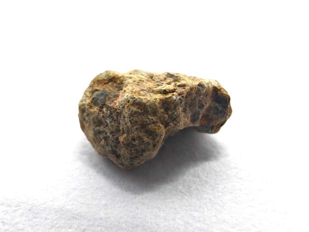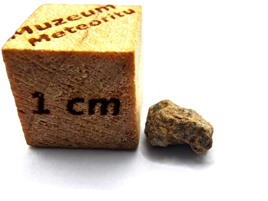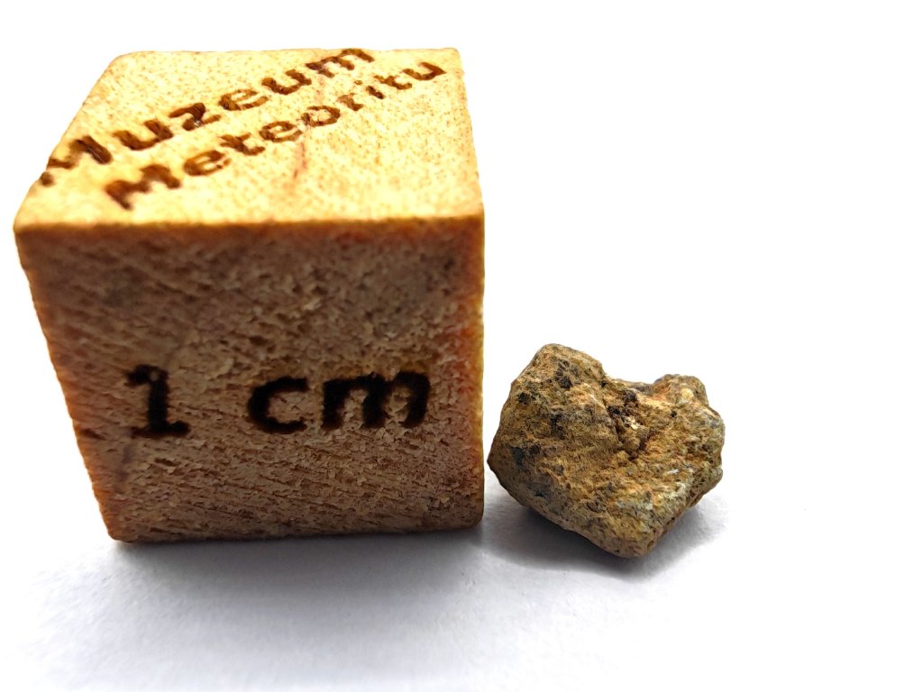 Fyzikální vlastnosti : Celková sebraná hmotnost byla přibližně 2 kg. Vzorky usazenin vykazují vnější povrch částečně pokrytý tmavou, mírně odřenou krustou z tavení. Povrch řezaný pilou odhaluje mnoho charakteristických milimetrových hnědozelených fenokrystalů olivínu zasazených do světle hnědožluté, jemnozrnné základní hmoty.
