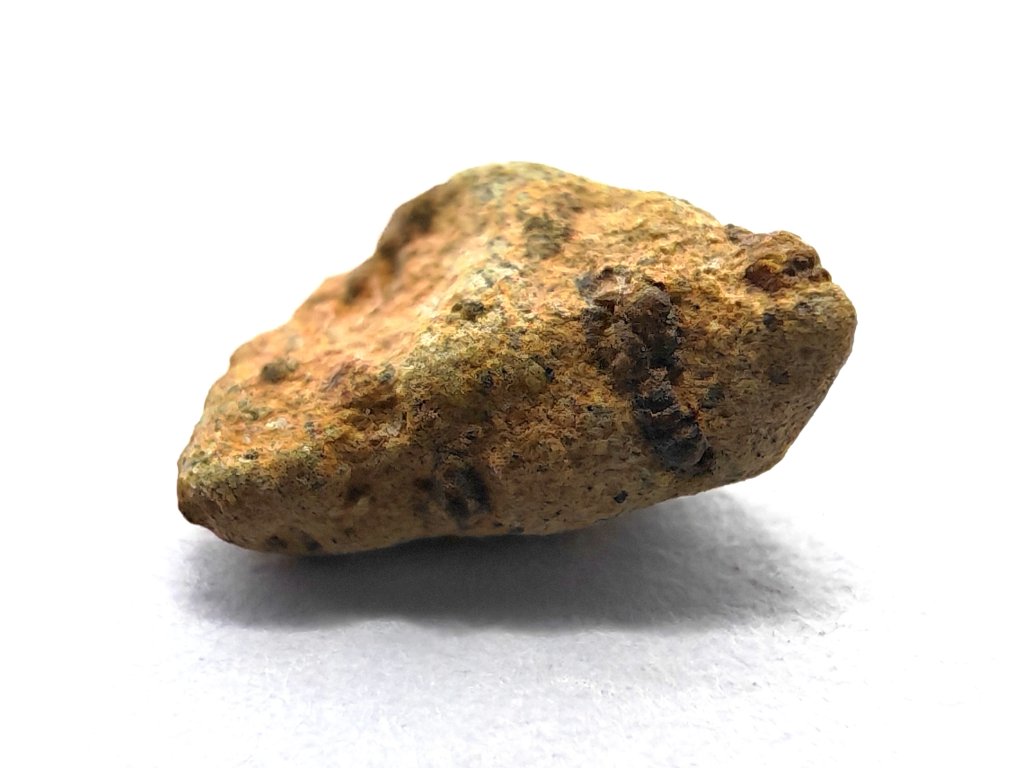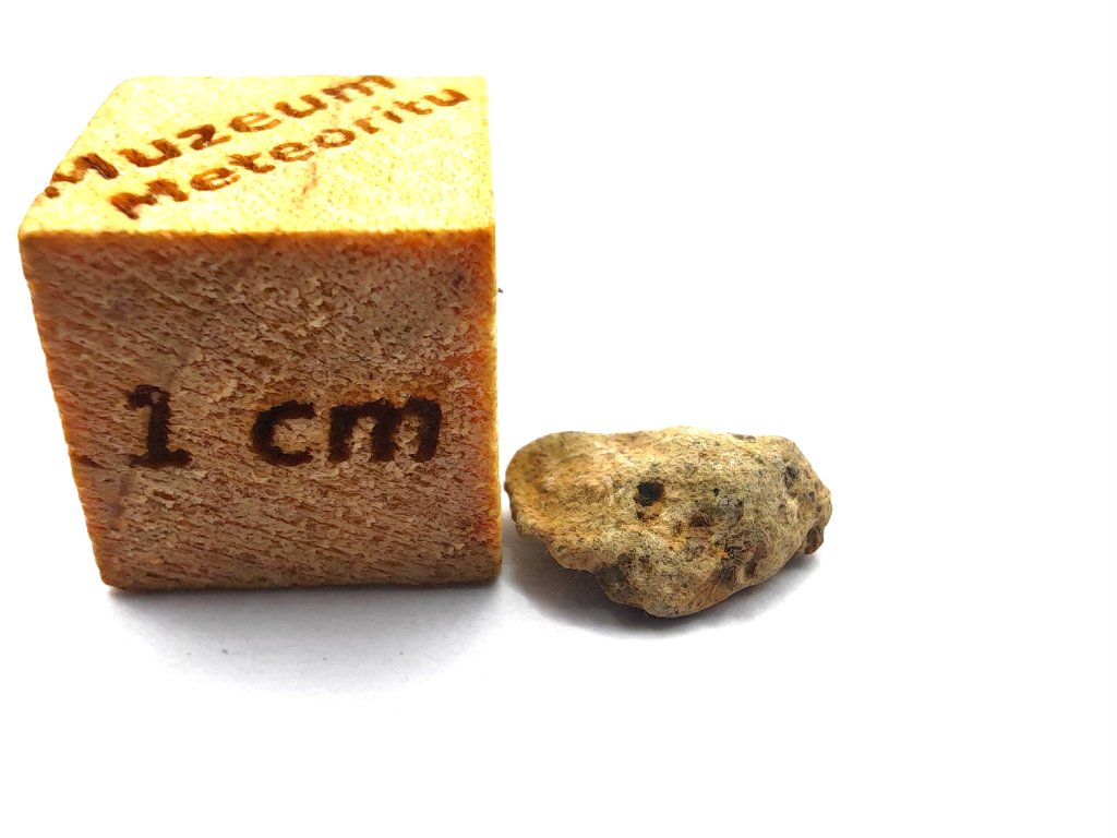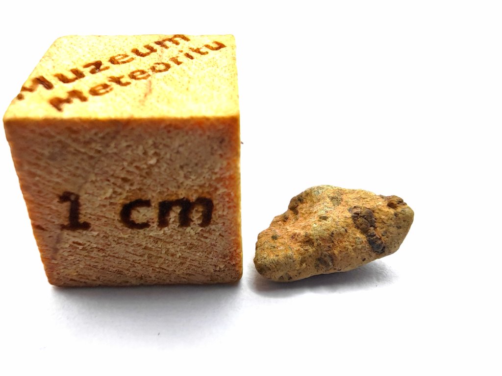 Fyzikální vlastnosti : Celková sebraná hmotnost byla přibližně 2 kg. Vzorky usazenin vykazují vnější povrch částečně pokrytý tmavou, mírně odřenou krustou z tavení. Povrch řezaný pilou odhaluje mnoho charakteristických milimetrových hnědozelených fenokrystalů olivínu zasazených do světle hnědožluté, jemnozrnné základní hmoty.