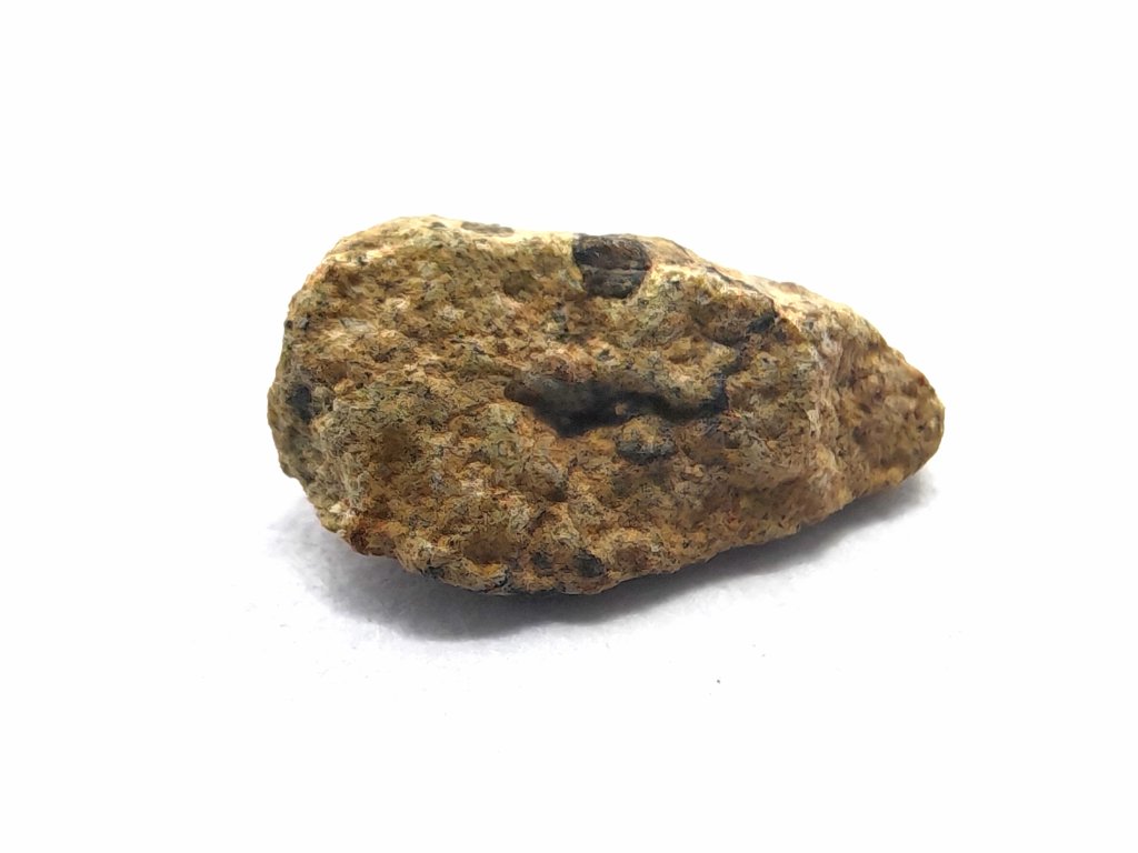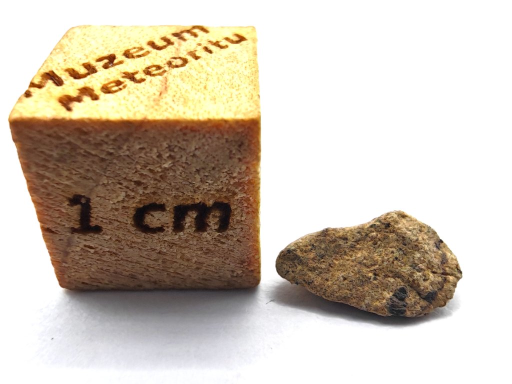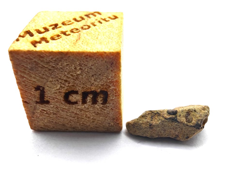 Fyzikální vlastnosti : Celková sebraná hmotnost byla přibližně 2 kg. Vzorky usazenin vykazují vnější povrch částečně pokrytý tmavou, mírně odřenou krustou z tavení. Povrch řezaný pilou odhaluje mnoho charakteristických milimetrových hnědozelených fenokrystalů olivínu zasazených do světle hnědožluté, jemnozrnné základní hmoty.