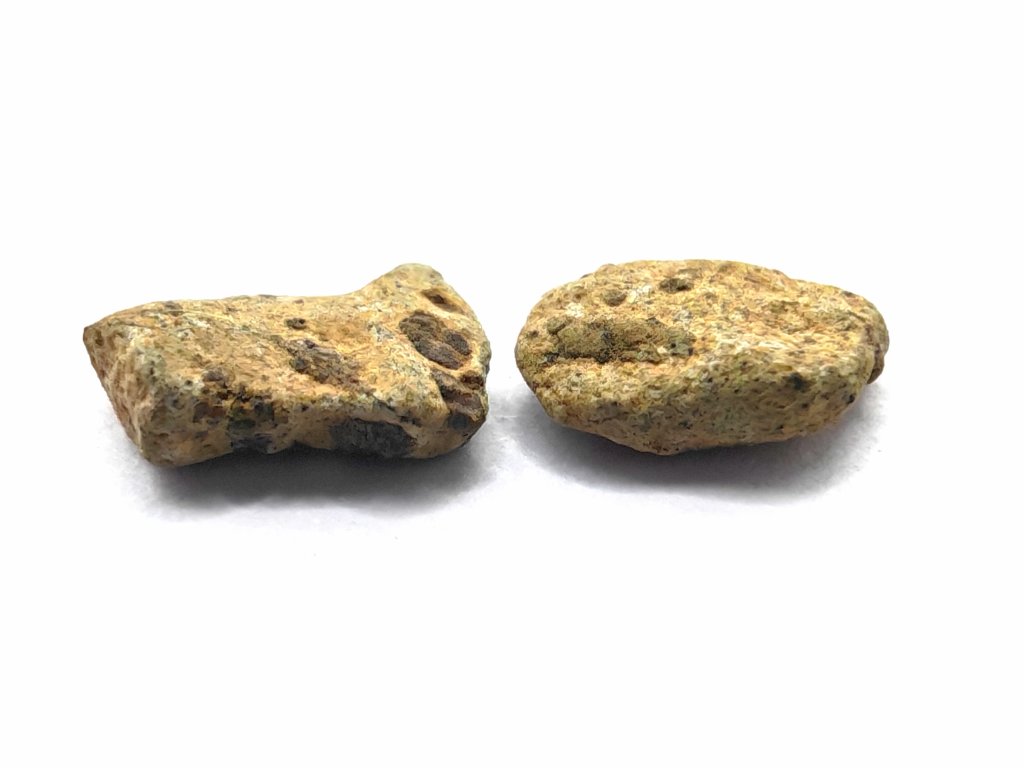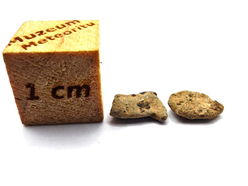 Fyzikální vlastnosti : Celková sebraná hmotnost byla přibližně 2 kg. Vzorky usazenin vykazují vnější povrch částečně pokrytý tmavou, mírně odřenou krustou z tavení. Povrch řezaný pilou odhaluje mnoho charakteristických milimetrových hnědozelených fenokrystalů olivínu zasazených do světle hnědožluté, jemnozrnné základní hmoty.