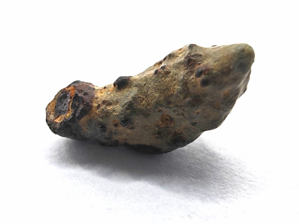 Fyzikální vlastnosti : Celková sebraná hmotnost byla přibližně 2 kg. Vzorky usazenin vykazují vnější povrch částečně pokrytý tmavou, mírně odřenou krustou z tavení. Povrch řezaný pilou odhaluje mnoho charakteristických milimetrových hnědozelených fenokrystalů olivínu zasazených do světle hnědožluté, jemnozrnné základní hmoty.