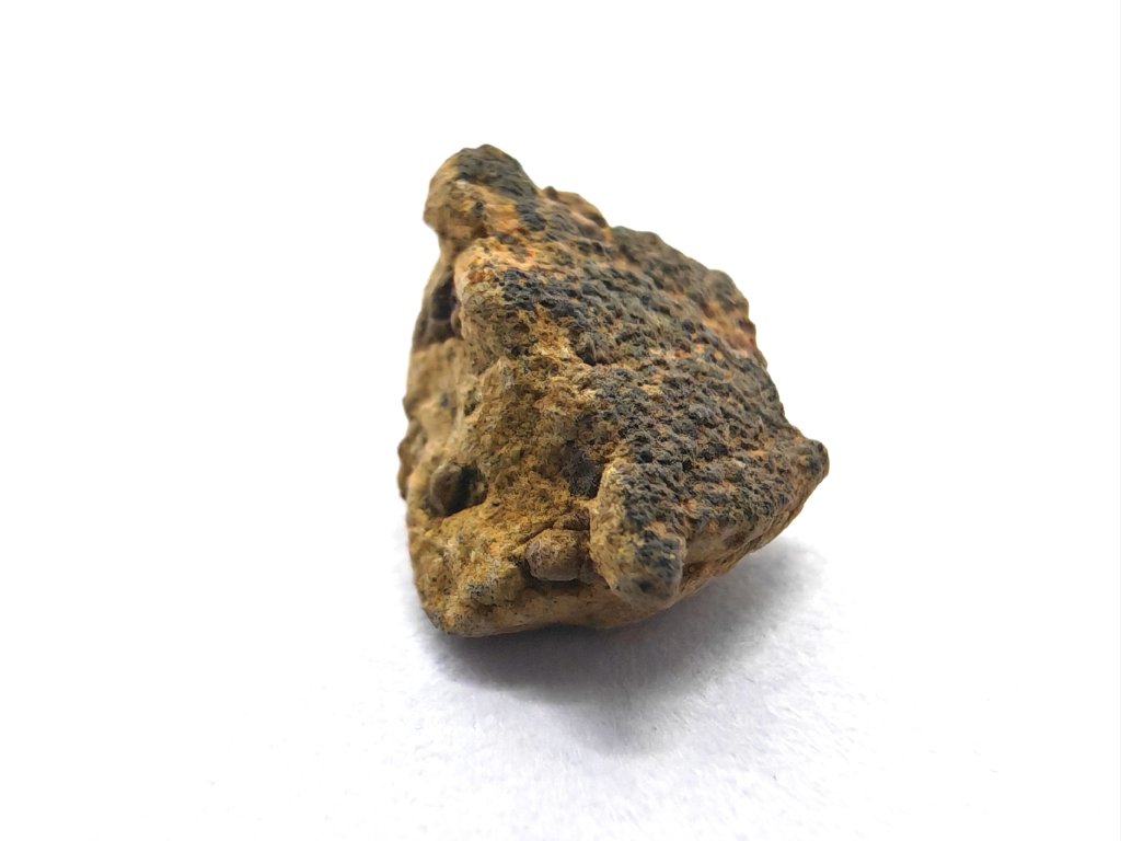 Fyzikální vlastnosti : Celková sebraná hmotnost byla přibližně 2 kg. Vzorky usazenin vykazují vnější povrch částečně pokrytý tmavou, mírně odřenou krustou z tavení. Povrch řezaný pilou odhaluje mnoho charakteristických milimetrových hnědozelených fenokrystalů olivínu zasazených do světle hnědožluté, jemnozrnné základní hmoty.