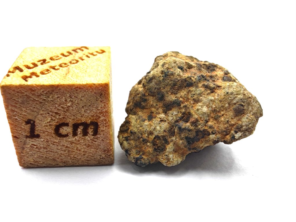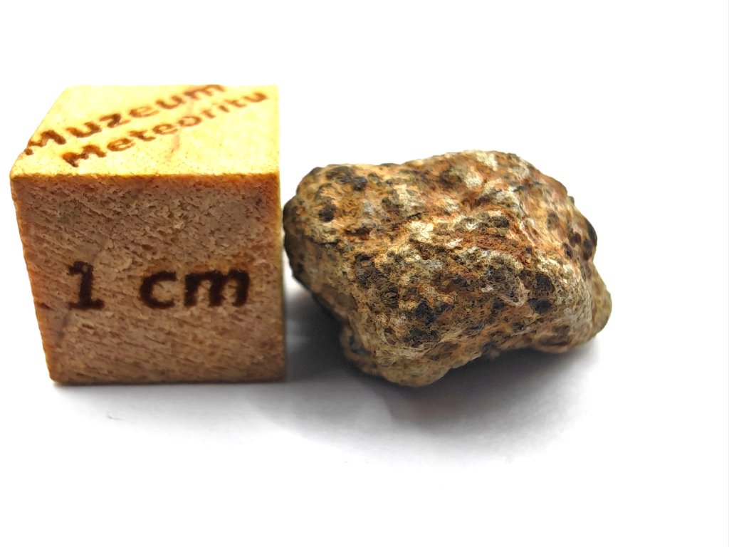 Fyzikální vlastnosti : Celková sebraná hmotnost byla přibližně 2 kg. Vzorky usazenin vykazují vnější povrch částečně pokrytý tmavou, mírně odřenou krustou z tavení. Povrch řezaný pilou odhaluje mnoho charakteristických milimetrových hnědozelených fenokrystalů olivínu zasazených do světle hnědožluté, jemnozrnné základní hmoty.