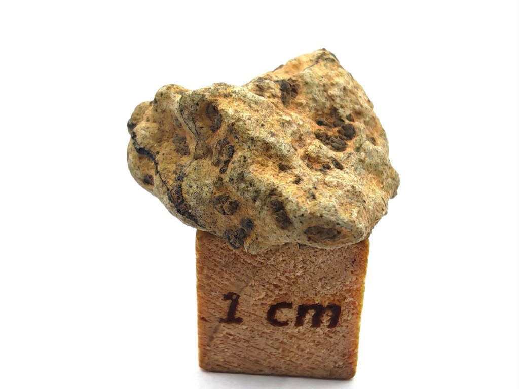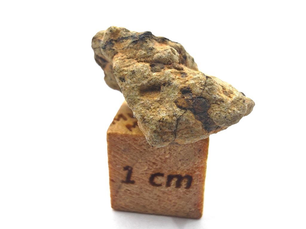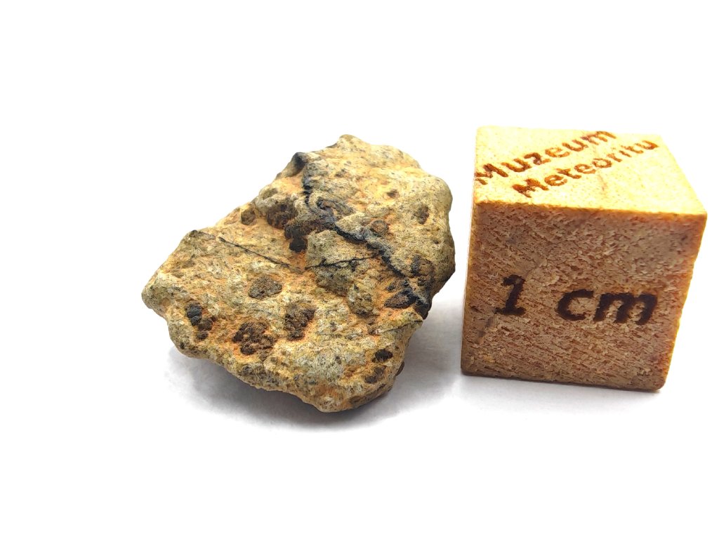 Fyzikální vlastnosti : Celková sebraná hmotnost byla přibližně 2 kg. Vzorky usazenin vykazují vnější povrch částečně pokrytý tmavou, mírně odřenou krustou z tavení. Povrch řezaný pilou odhaluje mnoho charakteristických milimetrových hnědozelených fenokrystalů olivínu zasazených do světle hnědožluté, jemnozrnné základní hmoty.