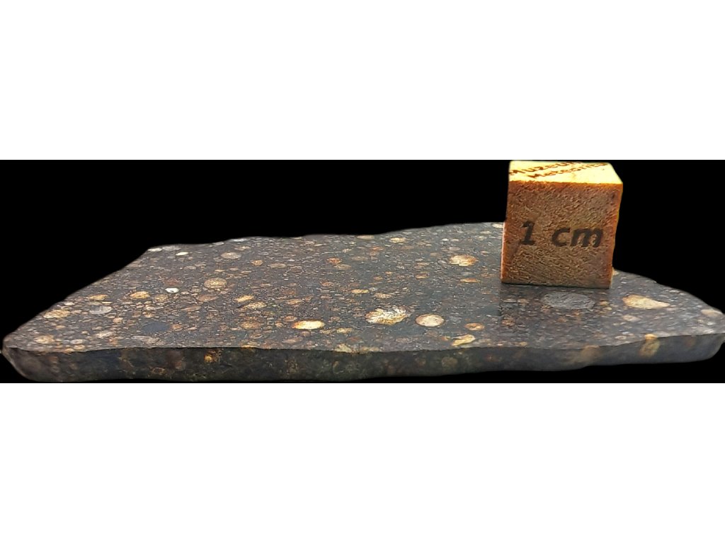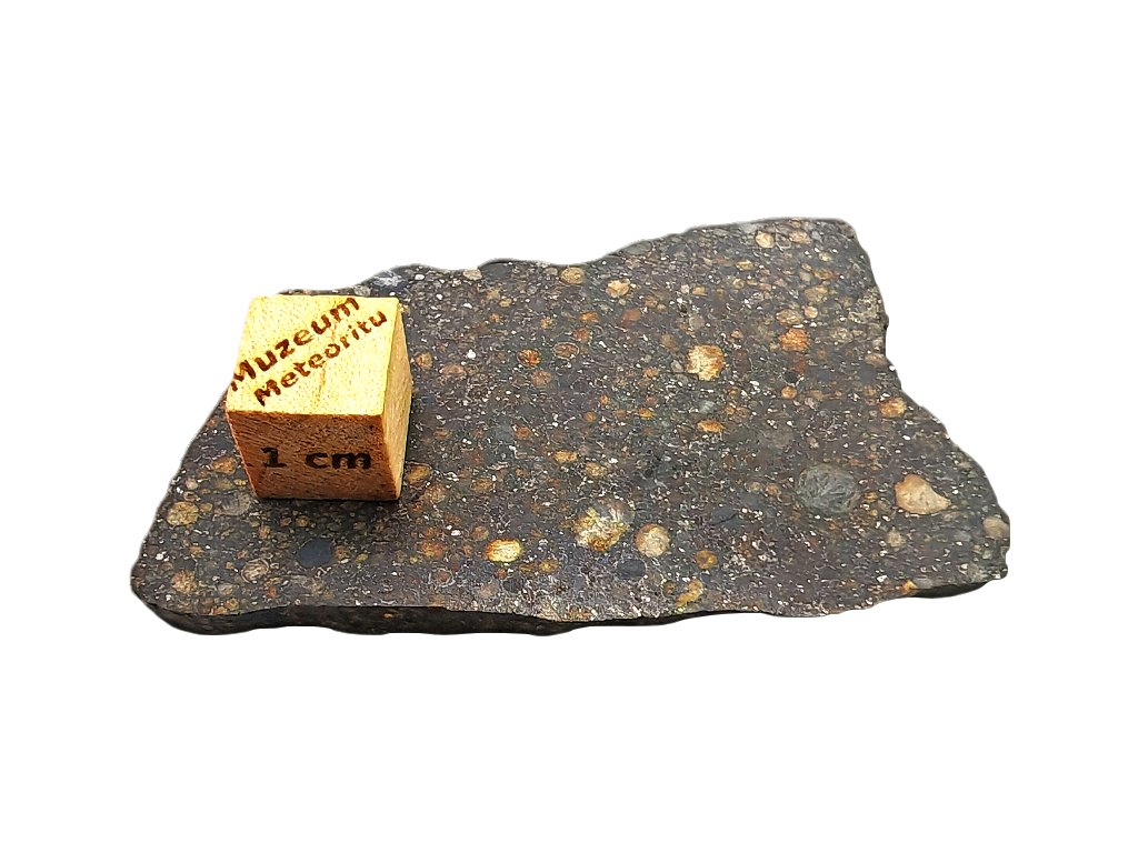 Petrografie : Meteorit vykazuje chondritickou texturu s dobře definovanými, částečně zploštělými, částečně zhuštěnými chondrulami (střední průměr asi 0,9 mm) v jemnozrnné tmavě šedavé matrici, která obsahuje sulfidy a méně hojný kov FeNi.
