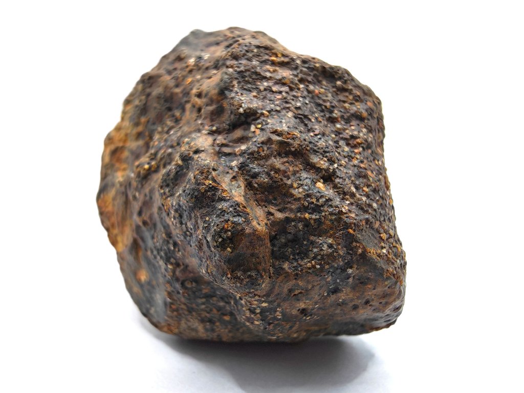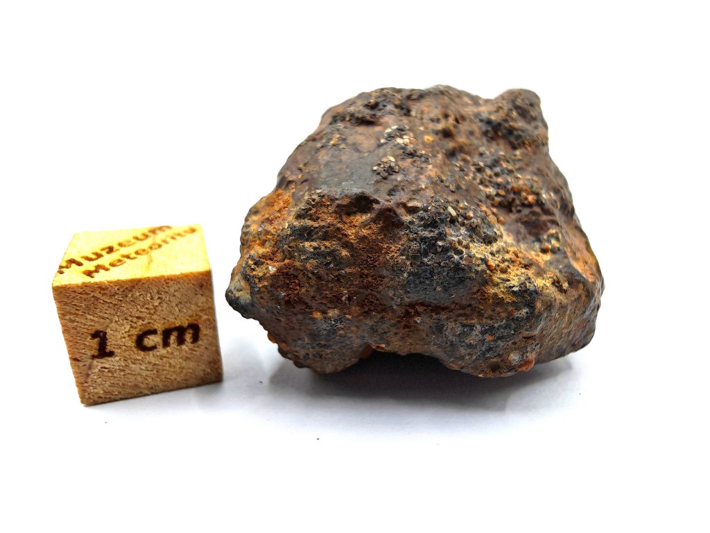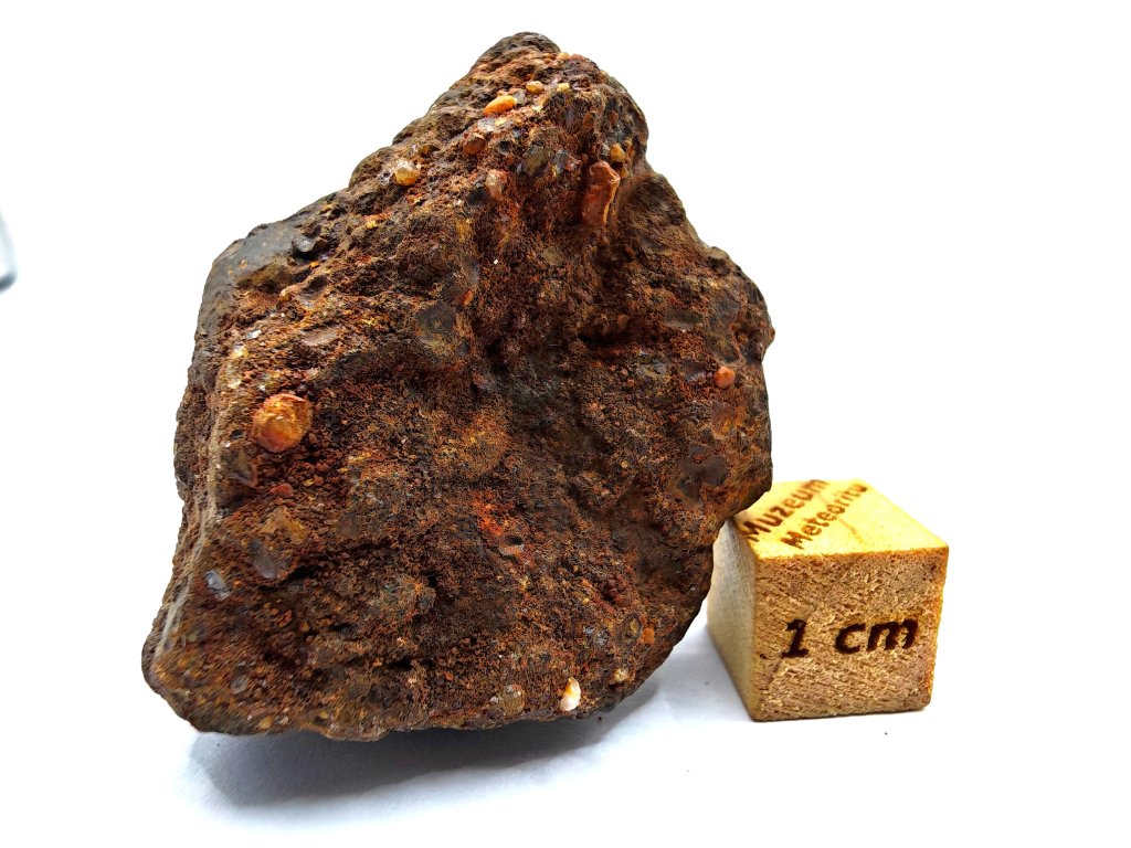 Sekundární zrna živce jsou většinou <50 µm. Vysoké množství kovu Fe-Ni, mírně oxidovaný zemským zvětráváním.