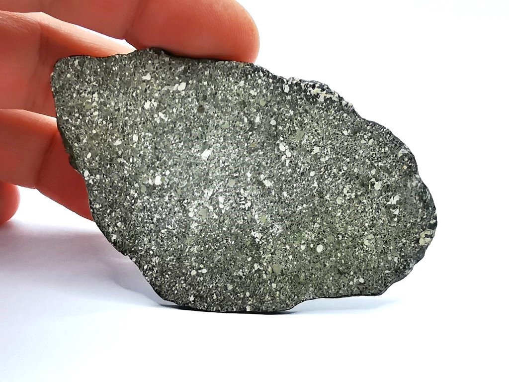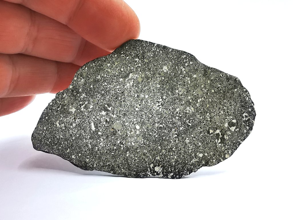 Fyzikální vlastnosti : Mnoho tmavě šedavých úlomků, z nichž některé jsou téměř úplně pokryty fúzní kůrou.
