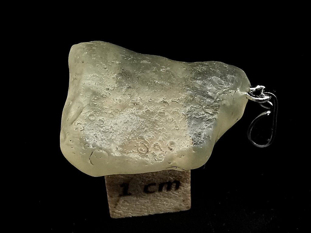 Kámen je surový a nijak neopracovaný. Je opatřen stříbrným očkem pro zavěšení na řetízek. Stříbro opatřeno českým státním puncem.