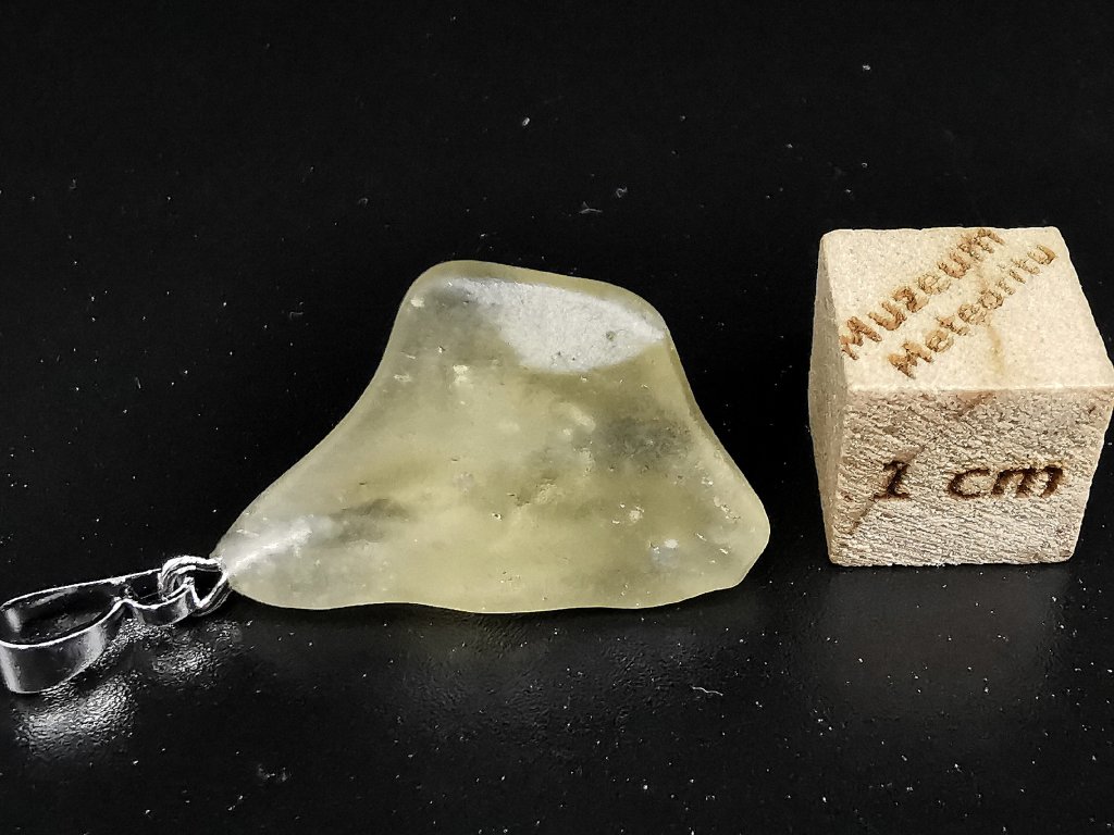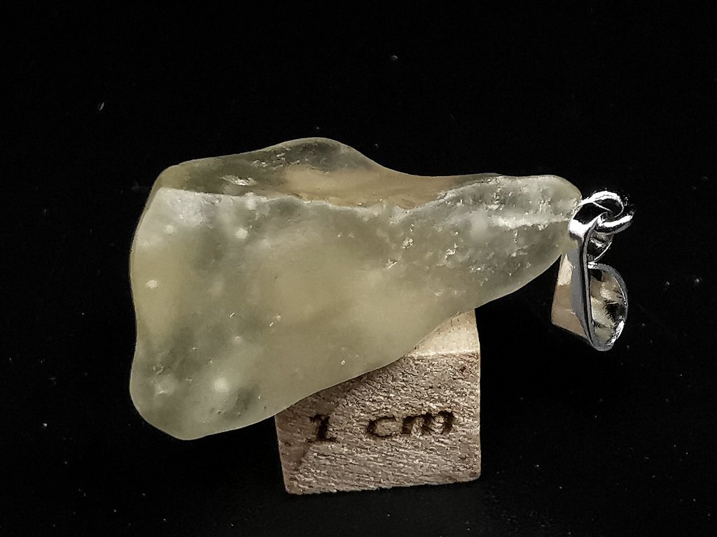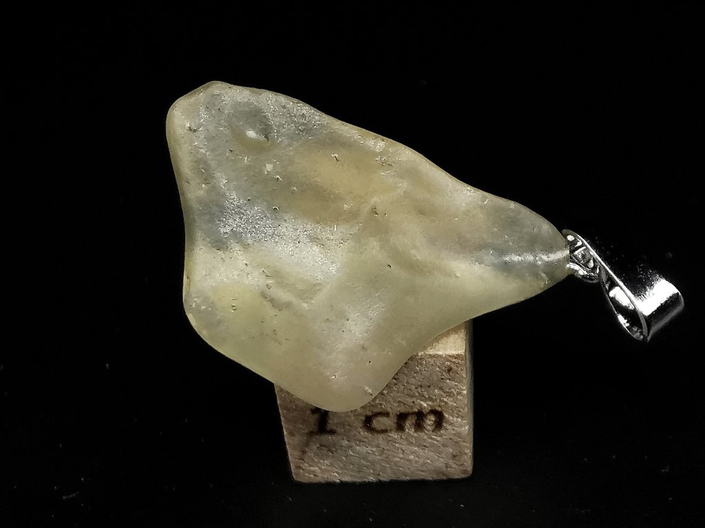 Kámen je surový a nijak neopracovaný. Je opatřen stříbrným očkem pro zavěšení na řetízek. Stříbro opatřeno českým státním puncem.