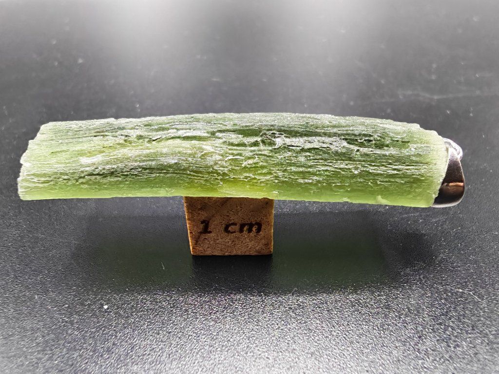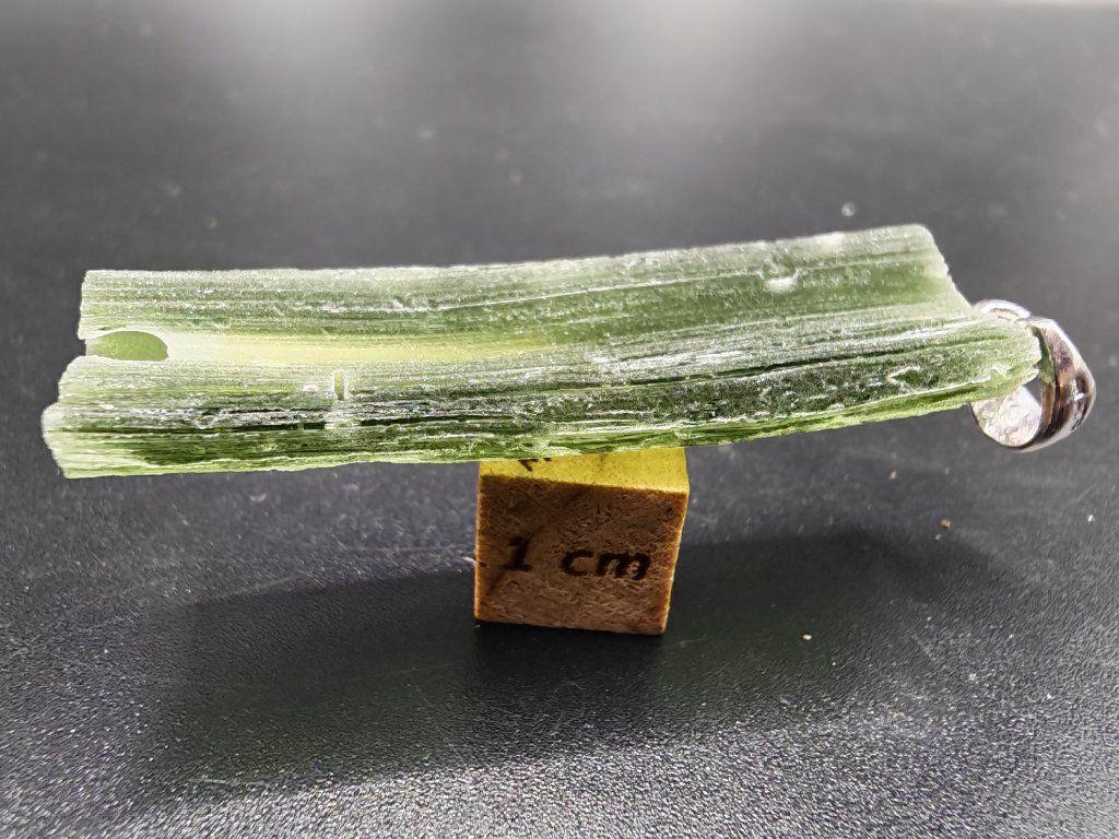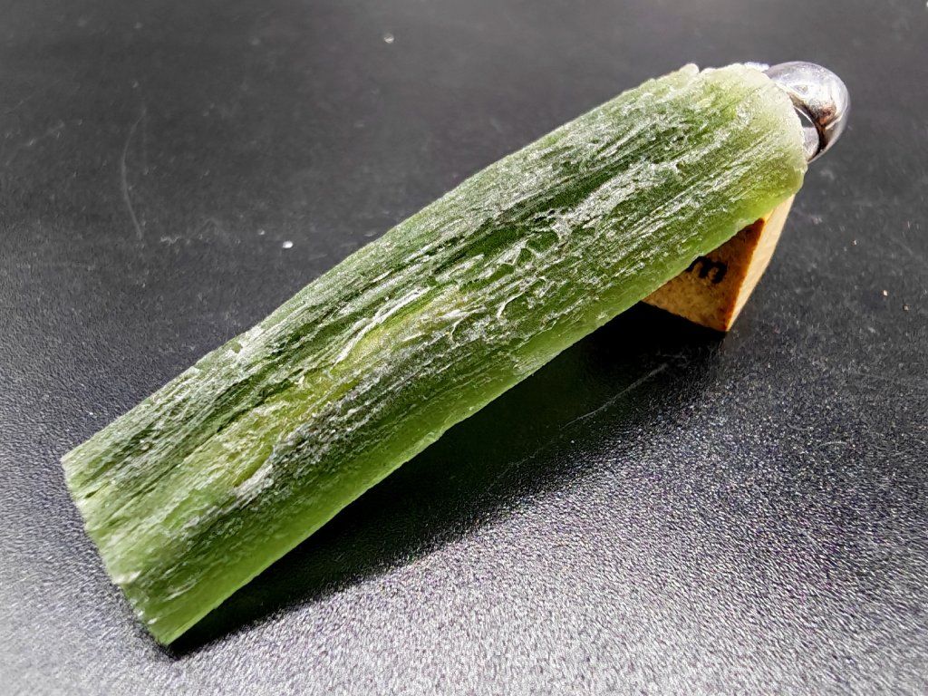 Kámen je surový a nijak neopracovaný. Je opatřen stříbrným očkem pro zavěšení na řetízek. Stříbro opatřeno českým státním puncem.