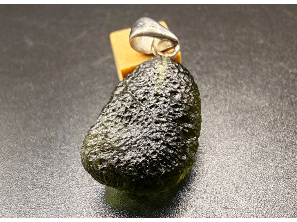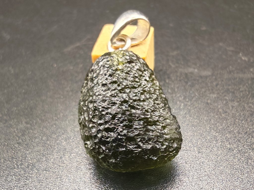Kámen je surový a nijak neopracovaný. Je opatřen stříbrným očkem pro zavěšení na řetízek. Stříbro opatřeno českým státním puncem.
