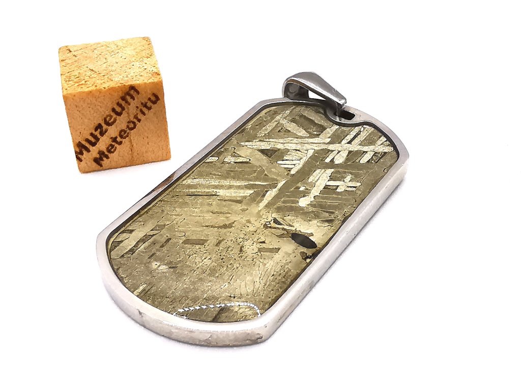 Meteorit má krásné Widmanstättenovy obrazce, které můžeme vidět na leštěné a leptané ploše. Tento meteorit využíváme také k výrobě našich šperků, tak mrkni do sekce přívěsků.