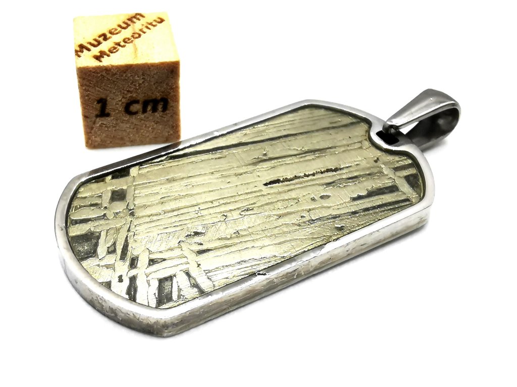 Meteorit má krásné Widmanstättenovy obrazce, které můžeme vidět na leštěné a leptané ploše. Tento meteorit využíváme také k výrobě našich šperků, tak mrkni do sekce přívěsků.
