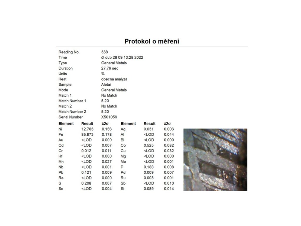 Tato položka slouží k zaplacení analýzy složení.